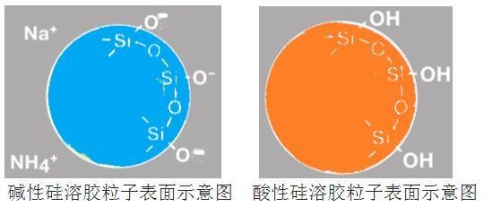 酸性硅溶胶的纳米二氧化硅粒子表面为硅酸结构,含有丰富的硅羟基,在储存过程中会逐渐发生羟基之间的缩合反应,因而酸性硅溶胶会逐渐发生凝胶,表现为随着储存时间的延长其粘度会逐渐增大,最后凝胶为果冻状。酸性硅溶胶在干燥过程中,纳米二氧化硅粒子之间因为会发生硅羟基之间的缩合反应,所以其粒子之间的结合力要比碱性硅溶胶或中性硅溶胶的大,因而在作为高温粘结剂领域会有发挥更好的粘结作用。